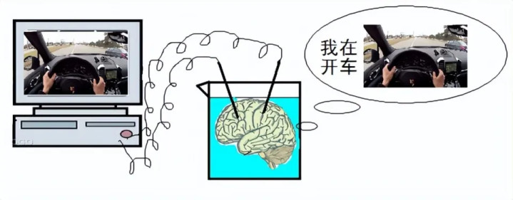 遐想一下:将一个完整的大脑从躯体中取出,摈弃在一个盛满养分液的缸中,以看守其生理活性。然后将悉数本来会聚感官和畅通器官的神经末梢,会聚到一台超等设计机上。这台设计机领有无与伦比的模拟才调,它实施以下任务: