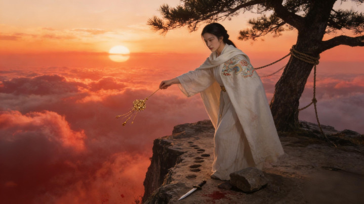 她深吸承接,捏紧了袖中早已准备好的绳子。绳子的一头,早已被阿澈固定在崖边的一棵粗壮的老松树上,另一头系着铁钩,能紧紧扣住崖壁的石缝。
