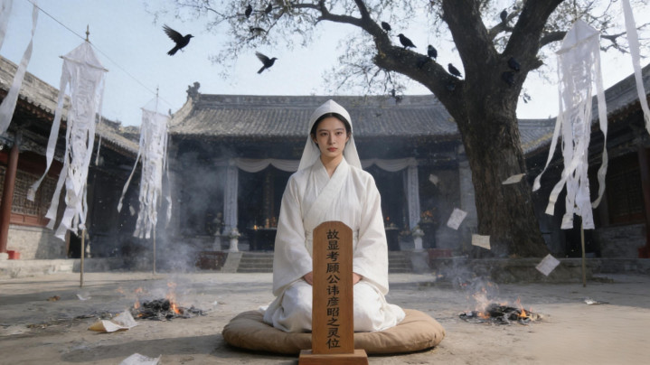 灵堂设在正厅,白幡簌簌作响,纸钱燃尽的灰烬打着旋儿飘起,又被寒风卷着,扑在她素白的面颊上。她跪坐在蒲团上,脊背挺得胜利,寂寥孝衣衬得她面容愈发清减,唯有一对眼睛,黯淡森的,不见半分悲恸,反倒像是藏着一潭深不见底的寒水。